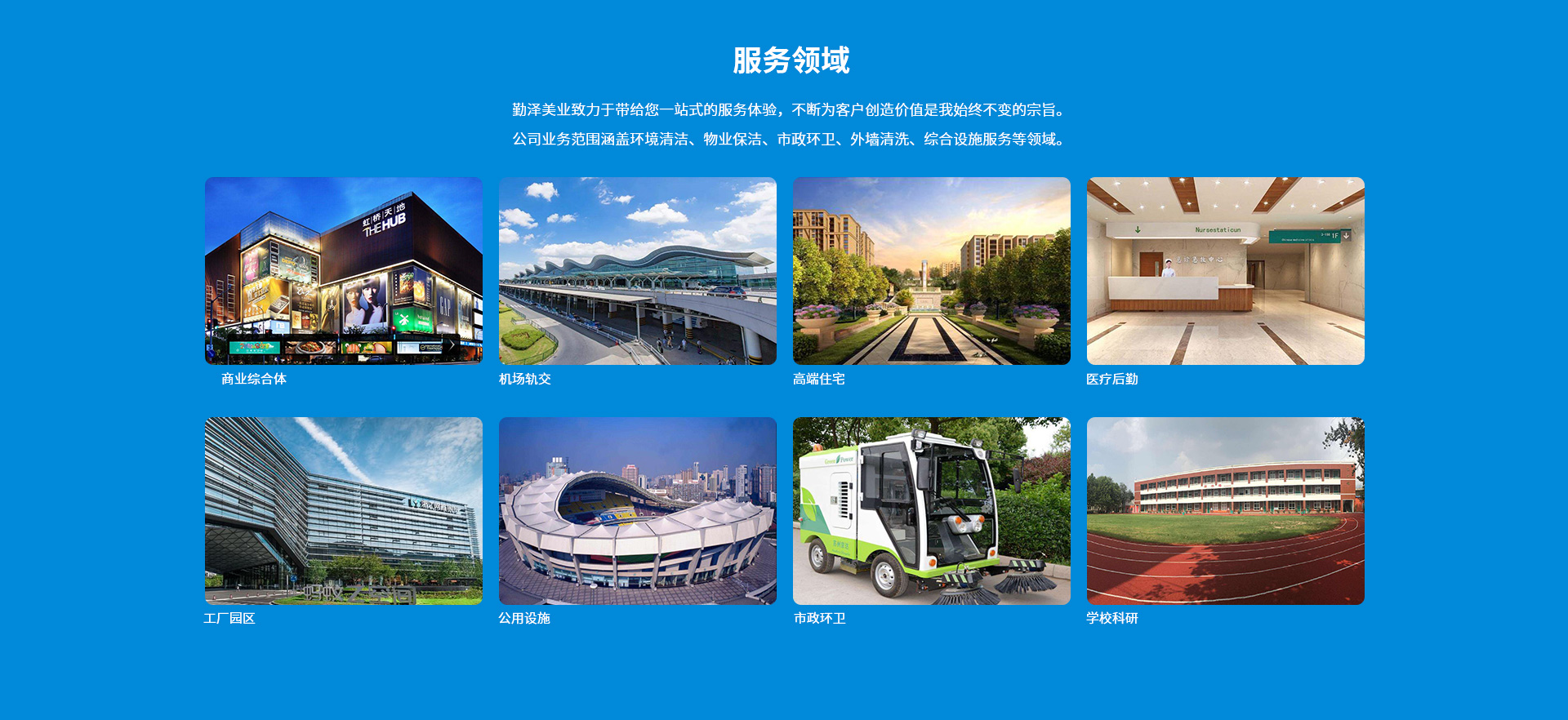 公司致力于把“勤澤美業(yè)”培育成眾口皆碑、令人尊敬、具有長(zhǎng)期價(jià)值的服務(wù)領(lǐng)袖品牌。業(yè)務(wù)范圍涵蓋環(huán)境清潔和綜合設(shè)施管理服務(wù),公司具備環(huán)衛(wèi)、保潔、石材等多個(gè)行業(yè)一級(jí)資質(zhì),致力成為中國環(huán)境服務(wù)行業(yè)的領(lǐng)導(dǎo)者。
